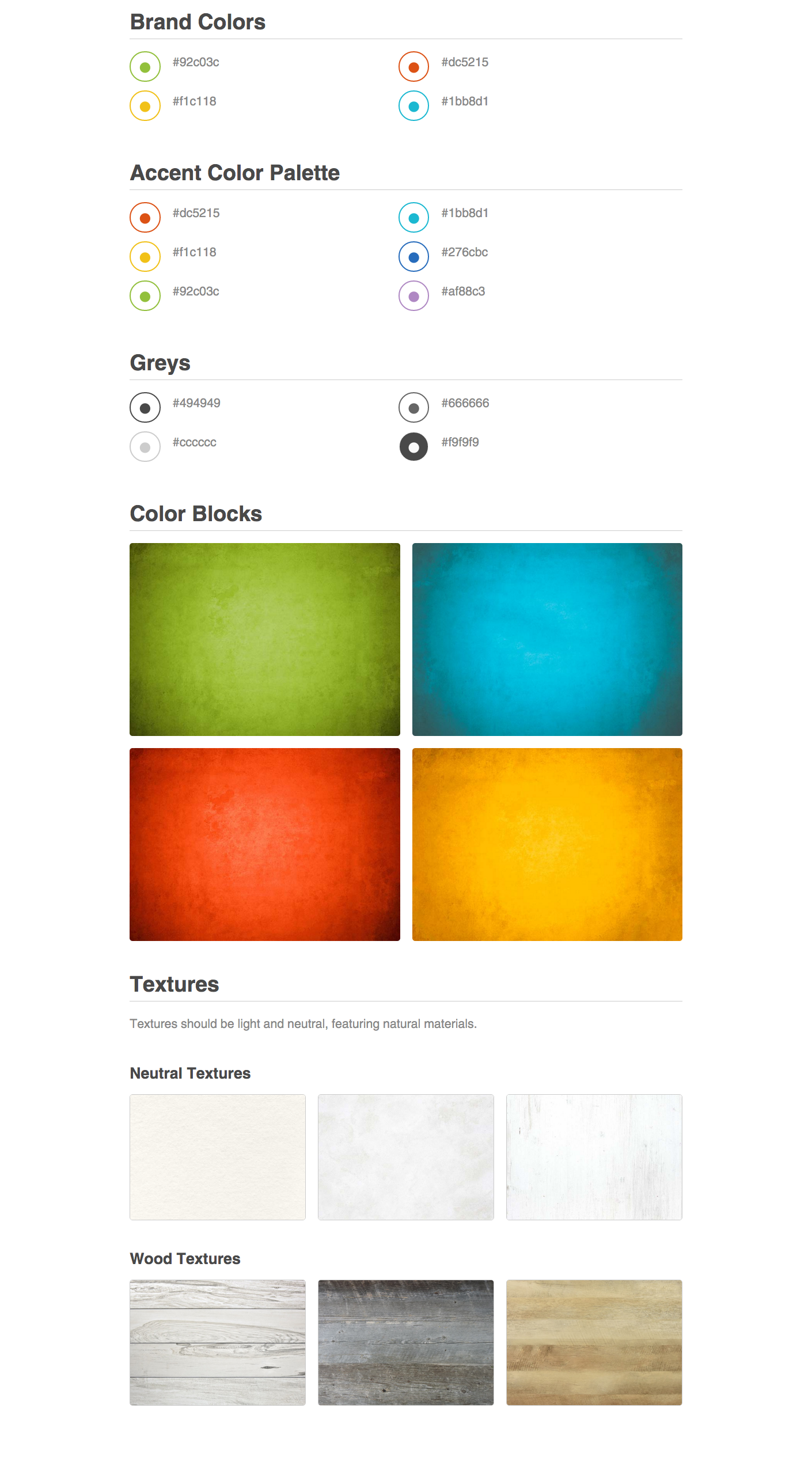 Design direction: Woody, earthy neutrals with pops of green; authentic photographs.